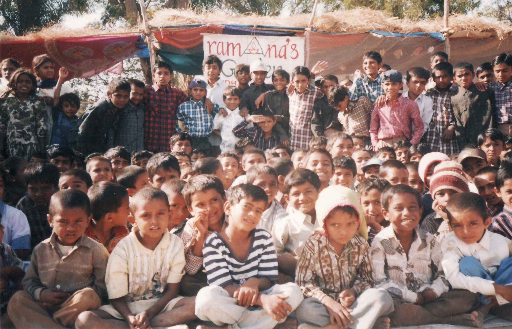 On Jan 2001 an earthquake in Gujarat left 1000’s injured, orphaned, and homeless. Ramana’s Garden kids organized a benefit day of performances and raised $3000. In the village of Dudai we found 800 children homeless. 200 died instantly when their school building collapsed. Many were suffering from injuries and no aid or medical assistance had come to their village in the 10 days since the quake, mainly because it was a low caste Harijan village.